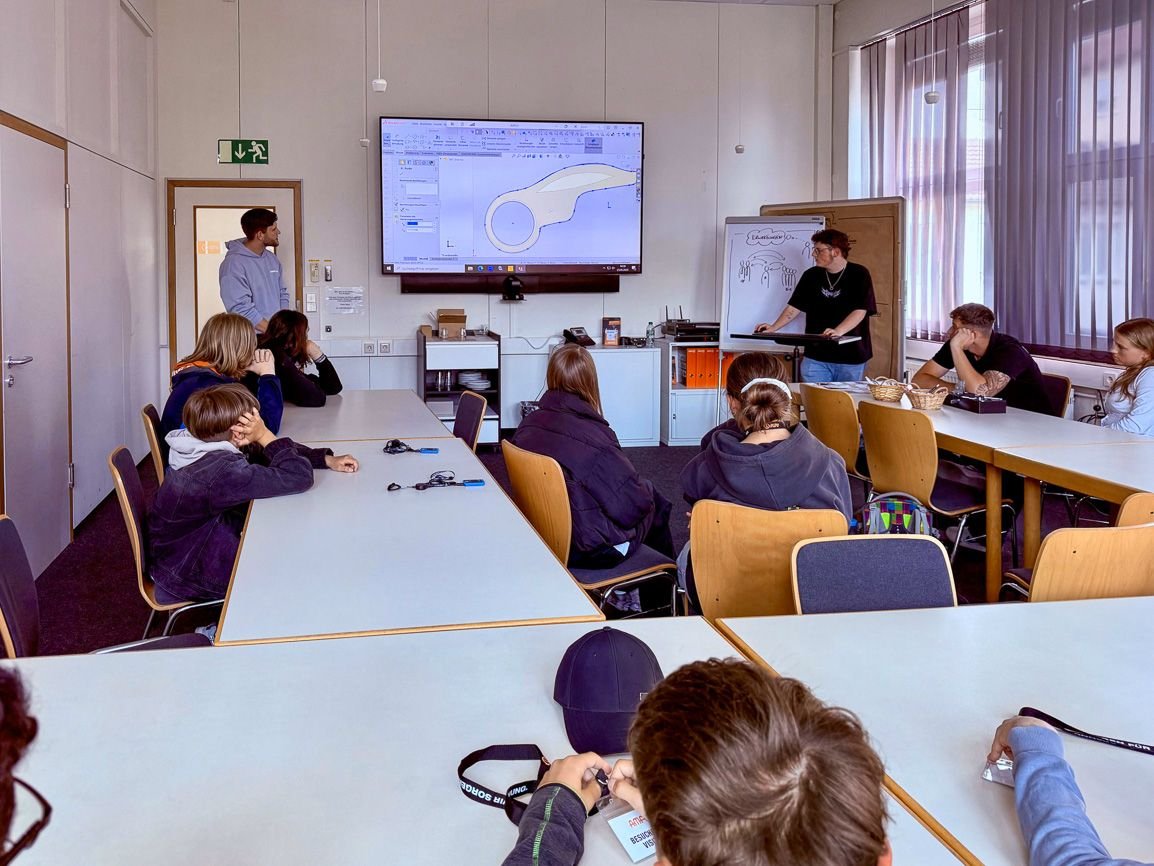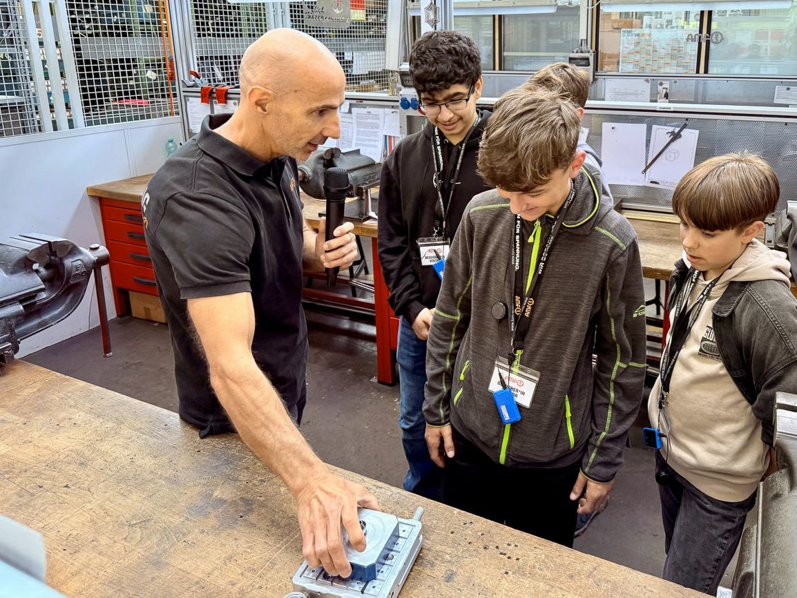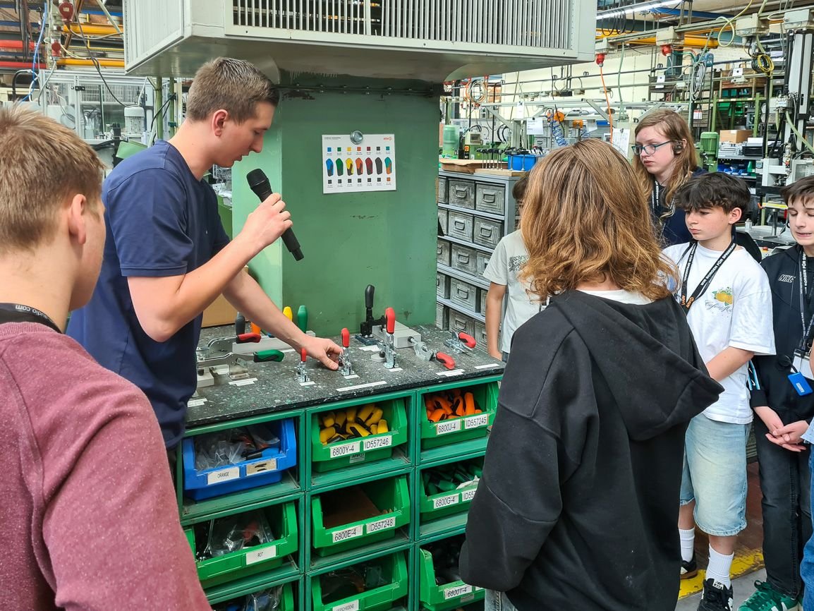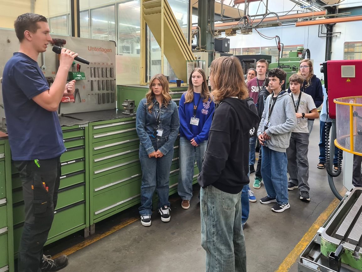 2025年5月23日周五,AMF榮幸接待了費(fèi)爾巴赫市古斯塔夫·施特雷澤曼文理中學(xué)(GSG)、弗里德里?!は瘴睦碇袑W(xué)(FSG)及赫爾曼·黑塞實(shí)科中學(xué)(HHR)約23名學(xué)生代表訪問AMF生產(chǎn)基地。