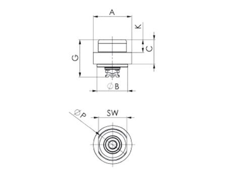 | 訂貨號(hào) | 尺寸 | 普通孔[NW] | A | dia.B | C | G | K | dia.P | SW | 重量[g] |