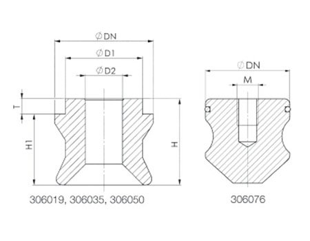 | 訂貨號 | 尺寸 | dia.DN | dia.D1 | dia.D2 | H | H1 | M | T | 重量[g] |