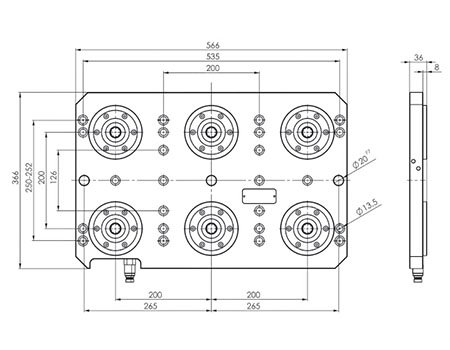 液壓零點(diǎn)定位系統(tǒng)適用于T型槽間隙為63、100和125mm的機(jī)床工作臺(tái),通過(guò)M12的沉頭螺栓緊固。至少有兩個(gè)定位孔,以便準(zhǔn)確定位。兩個(gè)零點(diǎn)定位器之間的間距是200mm。液壓快速接頭是預(yù)先安裝好的,氣壓除屑功能接口可選擇性的接通。