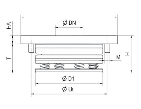 | 訂貨號(hào) | 尺寸 | dia. D | dia. DN | dia. D1 | H | HA | dia. LK | M | T |